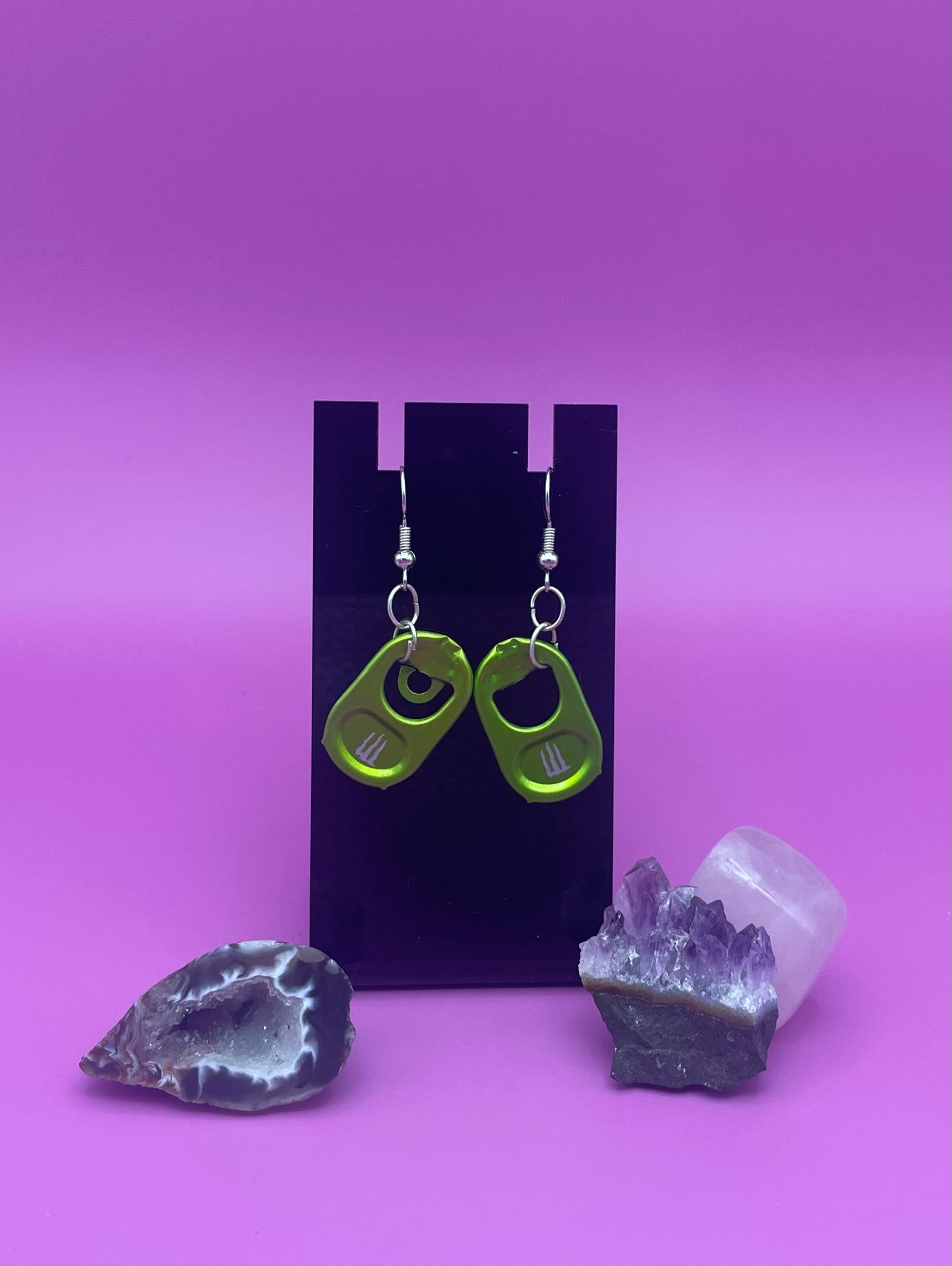 Add a splash of fun to your look with these upcycled Monster Tab Can Earrings! Choose your favorite color and pick between shiny gold or cool silver hooks to match your style. These playful earrings make a perfect quirky accessory that you can customize just for you, just let me know what color you want. Let your ears join the party!
