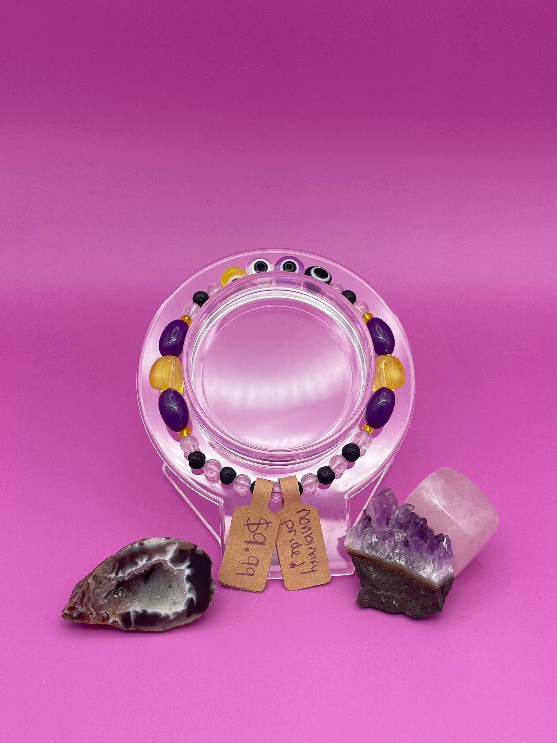 Celebrate your true self with this vibrant Non-Binary Pride Bracelet! Crafted with love, it’s a colorful symbol of freedom, acceptance, and unity. Wear it to shine your authentic light and spread peaceful good vibes wherever you go. Perfect for daily wear or gifting to your soul tribe.